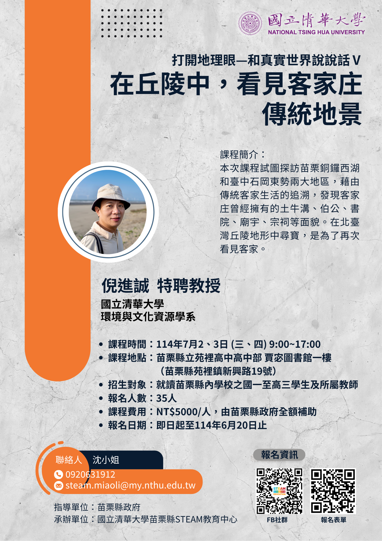 【暑假課程】114/07/02 ~ 114/07/03 打開地理眼—和真實世界說說話Ⅴ:在丘陵中,看見客家庄傳統地景