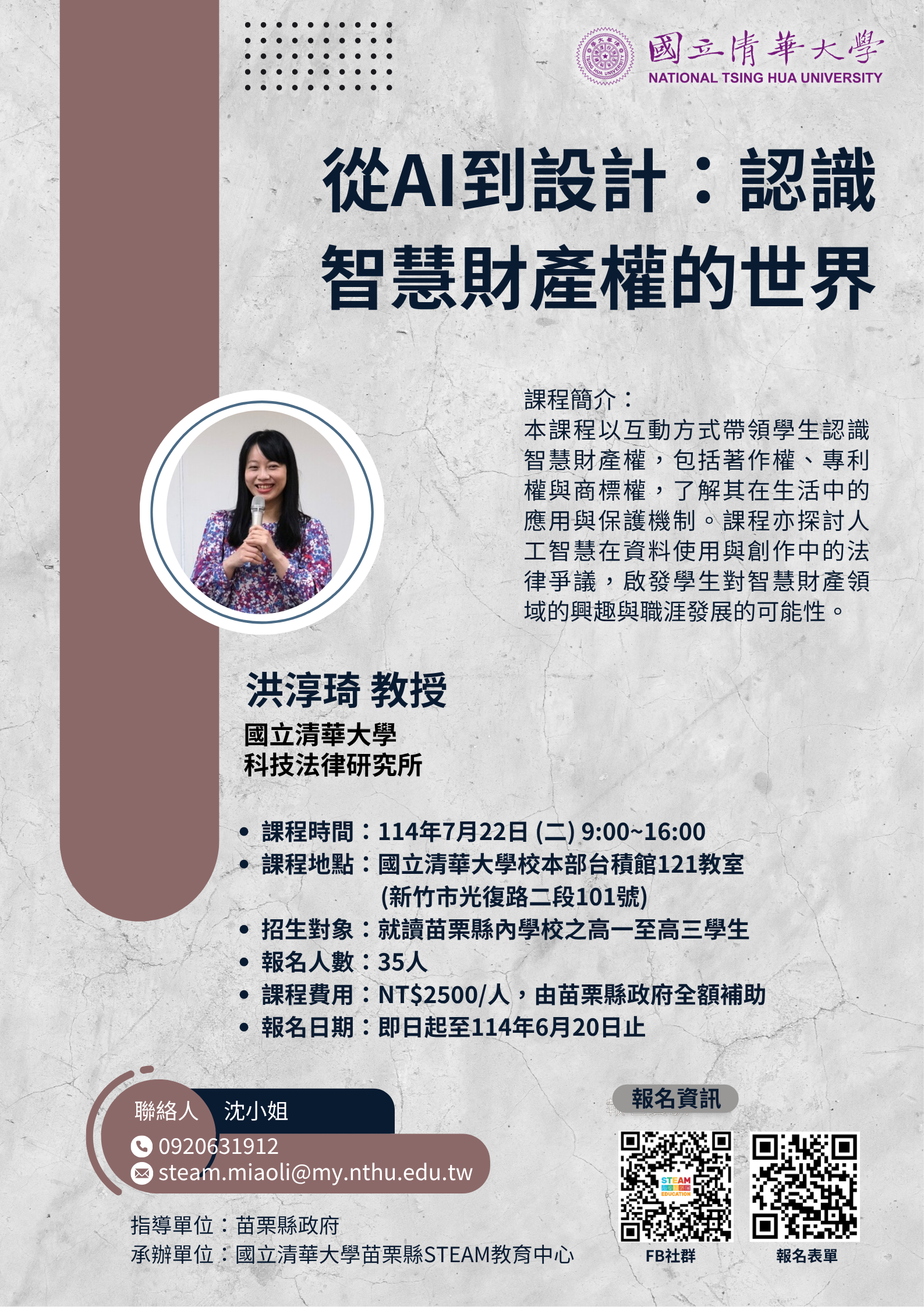 【暑假課程】114/07/22 從AI到設計:認識智慧財產權的世界